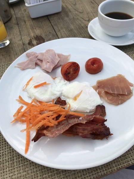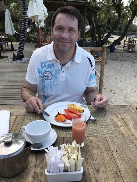 Um sieben Uhr gab es Frühstück im Hotel. Wir hatten wieder einen wunderschönen Platz draußen direkt am Strand. Besser kann man nicht in den Tag starten. Das Hotel hat wirklich alle Wünsche erfüllt und das Wort „Frische“ wird dort verdammt groß geschrieben. Es gab nicht eine Eierspeise, die schon vorbereitet war. Alles wurde individuell nach den Wünschen des Gastes zubereitet. Sogar die einfachen gekochten Eier. Man mußte nur die Wartezeit mitbringen für das Ei seiner Wünsche. Ich habe mich für zwei Pochierte Eier entschieden – hervorragende Wahl und Boris hat ein Rührei genommen, welches auch direkt vor seiner Nase zubereitet wurde. Es gab eine sehr große Fruchtauswahl, Käse- und Wurst ohne Ende, Räucherfisch, Cerealien, diverse frische Säfte, u. a. Guavensaft. Der Service war on top hervorragend. Es war ein toller Start in einen schönen Tag.