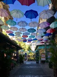 Auf der anderen Seite angekommen sind wir Richtung „Innenstadt“ gelaufen. Ist eine kleine, lustige und bunte Stadt. Wir haben ein Café am Wasser mit WiFi gefunden und dort eine „Kleinigkeit“ gegessen. Für mich gab es ein Stück Kuchen mit gesalzenem Karamell und Boris eine „Pseudo-Sachertorte“. Für mich gab es dazu ein Kokos-Frappé und für Boris wie immer seinen heißgeliebten Tee mit viiiiiiel Zucker und Milch. Es war viel zu viel. Es sah aber doch so gut aus....
