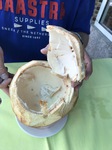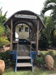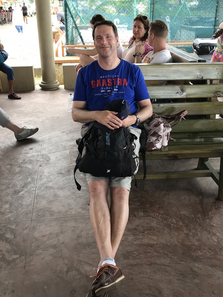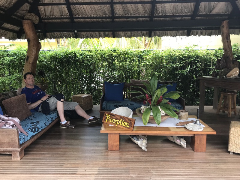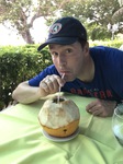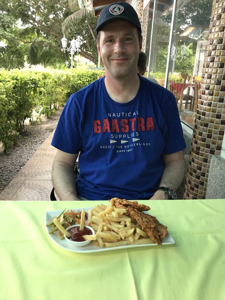 Nachdem wir unseren kleinen Koffer ausgepackt haben, uns ein wenig frischgemacht und eingecremt haben (!!!) sind wir ein wenig spazieren gegangen. Wir waren hungrig und haben ein kleines Restaurant gefunden, das Creolische Küche anbietet. Ich dachte mir, da bestelle ich mir glatt mal einen frischen Kokosnusssaft. Und dann wurde die Kokosnuss von der Palme vor uns direkt vom Baum geholt und mir im Anschluss serviert. Ich habe noch nie in meinem Leben so eine frische Kokosnuss getrunken und im Anschluss gegessen. Wir haben sie ausgelöffelt. Hammer. Boris hat sich für ein typisches Creolische Gericht entschieden: Fish & Chips. Okay, eher nicht creolisch. Ich dafür schon und es war sehr lecker. Auf dem Rückweg haben wir nach etwas längerem Suchen einen Supermarkt gefunden – nun ja, ein kleiner Kaufsmannsladen halt und – wie sich später herausstellte – absolut überteuert.