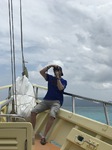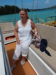 Auf Praslin musste ich unseren Onlinevoucher auch in ein Ticket umtauschen, was problemlos möglich war. Die ursprüngliche Fähre war natürlich weg, aber es gab eine zusätzliche Fähre, die – wie sich später herausstellte – viel angenehmer war. Lange warten mußten wir nicht und dann ging es ca. 20 Minuten weiter Richtung La Digue. Diesmal ohne Seegang und mit strahlendem Sonnenschein. Hätte ich mich nur eingecremt….