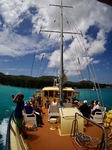 Heute haben wir uns – bekloppt wie wir sind – den Wecker auf 04.45 Uhr gestellt. Das nenne ich Urlaub. Wir dachten uns, schauen wir uns den schönen Sonnenaufgang direkt vor den Seychellen an. Als wir draußen waren, kam uns Sturm und Regen entgegen, an einen schönen Sonnenaufgang war noch nicht zu denken. Also zurück auf die Kabine und ein wenig rumgetüdelt bevor wir dann gegen 06:00 Uhr wieder rausgegangen sind. Das Wetter hat sich ein wenig beruhig und es war ein schöner Regenbogen sichtbar. Regenbogen bedeutet ja – wie der Name schon sagt – es muss irgendwo Regen gegeben haben. Aber dieser nahm langsam aber sicher ab.