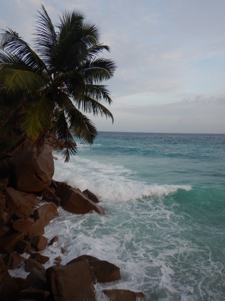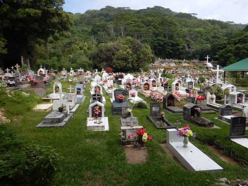Kikkikriiikiiiii … Guten Morgen La Digue, es ist 04:10 Uhr und der Hahn im Garten ist aufgewacht… Aber irgendwie auch lustig. Mitten im indischen Ozean kräht ein Hahn und weckt uns. Wahrscheinlich hat er gerade das Frühstücksei gelegt. Aber wir waren wach und haben nur noch ein wenig vor uns hingedöst. Um sechs sind wir dann aufgebrochen und sind die Insel Richtung Norden gelaufen. Die Luft war warm, aber schön – nicht so drückend. Es waren kaum Menschen unterwegs und es war einfach eine wunderschöne Atmosphäre. Auf dem Weg am Hafen vorbei kommt man irgendwann an einen wunderschön angelegten Friedhof. Die Toten haben Blick auf’s Meer. Könnte schöner nicht sein…