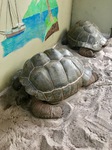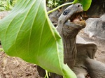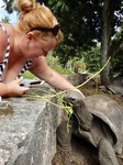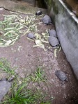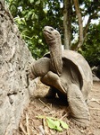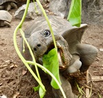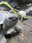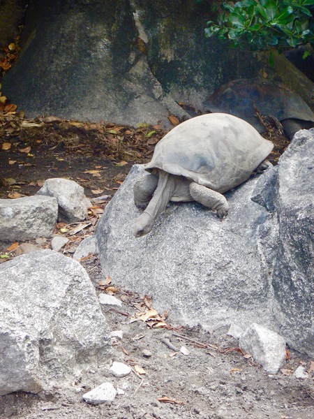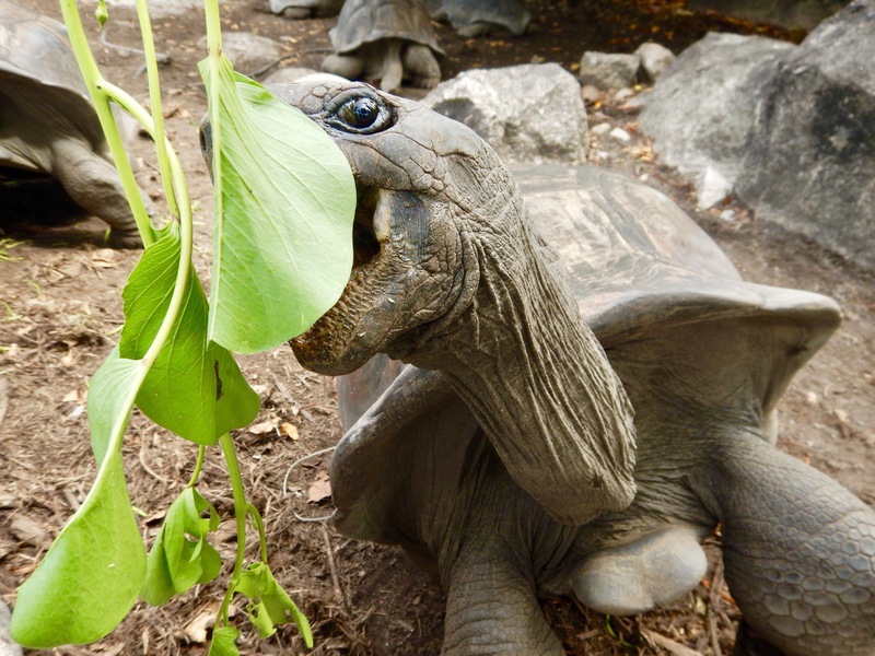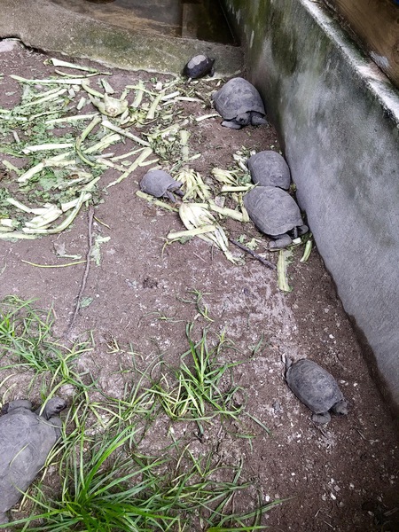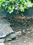 In der Nähe der großen Schildkröten, die übrigens zwischen 30 und 100 Jahre alt sind, gab es auch ein kleines Gehege mit kleinen halbstarken und frisch geschlüpften Schildis. Kaum vorstellbar, dass dies mal solche Riesen werden.