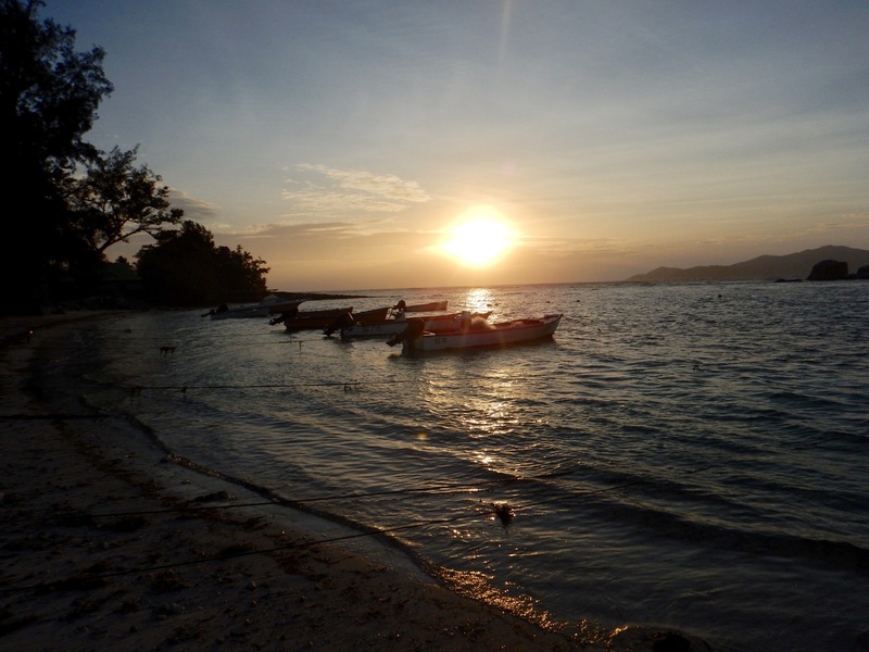 Den Vormittag haben wir uns auf der Terrasse des Bungalows aufgehalten. Erst wollten wir uns ein Fahrrad mieten, haben aber beschlossen, dass wir die andere Seite der Inseln am Nachmittag auch zu Fuß erkunden. Mittags hat Boris uns zwei Hamburger geholt aus einem kleinen Restaurant. Superlecker und mit Ananas, kann ich nur empfehlen. Besser als jedes Toast Hawai.