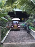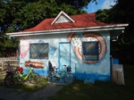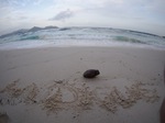 Es war gerade Flut und viele Strände waren kaum sichtbar, Wasser überall. Überall gab es kleine Buden, an denen man zu späterer Stunde frische Fruchtsäfte kaufen kann. Und dann war dort eine Bude mit einer tollen Bemalung. Und zwei Schildkröten drauf. Sie sahen aus wie in 3D aufgemalt. Das wollte ich mir aus nächster Nähe ansehen. Von wegen angemalt. Da lagen da zwei große Riesenschildkröten und schliefen. Ich habe mich kaum eingekriegt vor Freude. Ich finde Schildkröten ja einfach nur toll und mein Traum war immer, irgendwann auf die Galapagos Inseln zu fahren, nur wegen der Schildkröten. Den Weg kann ich mir sparen. Hier liegen gerade zwei in freier Wildbahn vor mir und lassen sich streicheln. Es war sehr sehr schwer, mich von dieser Stelle wegzubekommen…
