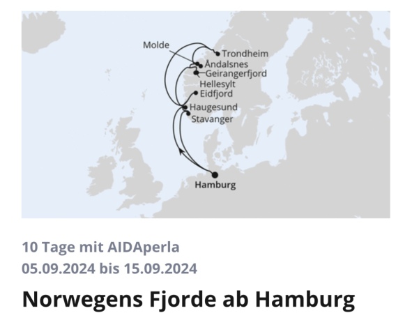 AIDAperla - Norwegens Fjorde vom 05.09.2024 bis zum 15.09.2024